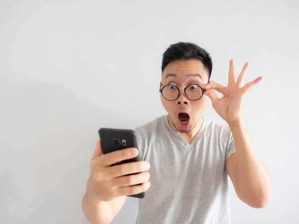 Wow, it’s unbelievable. Shocked african-american man opening mouth widely, pointing aside at copy space